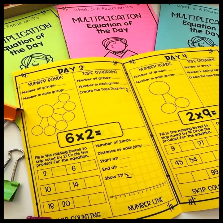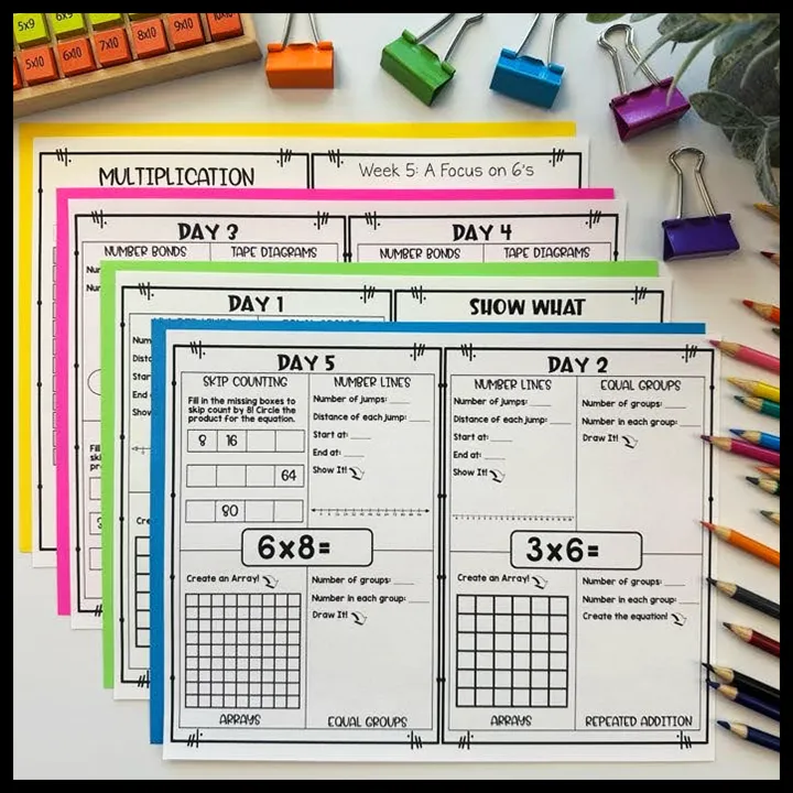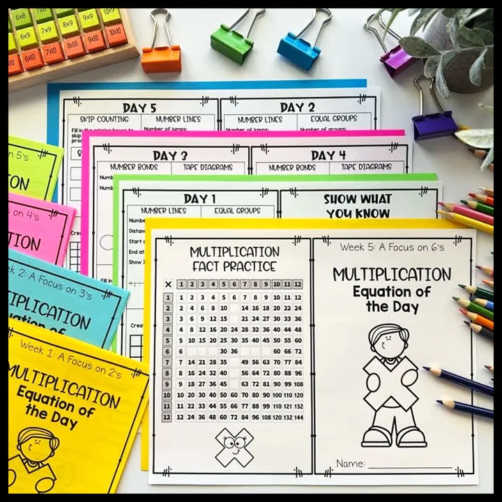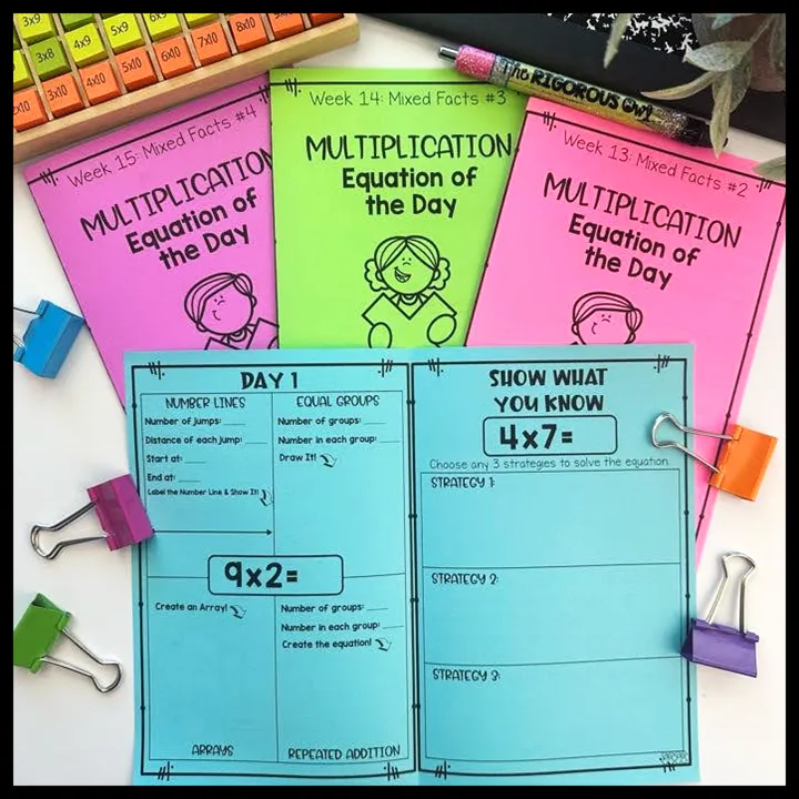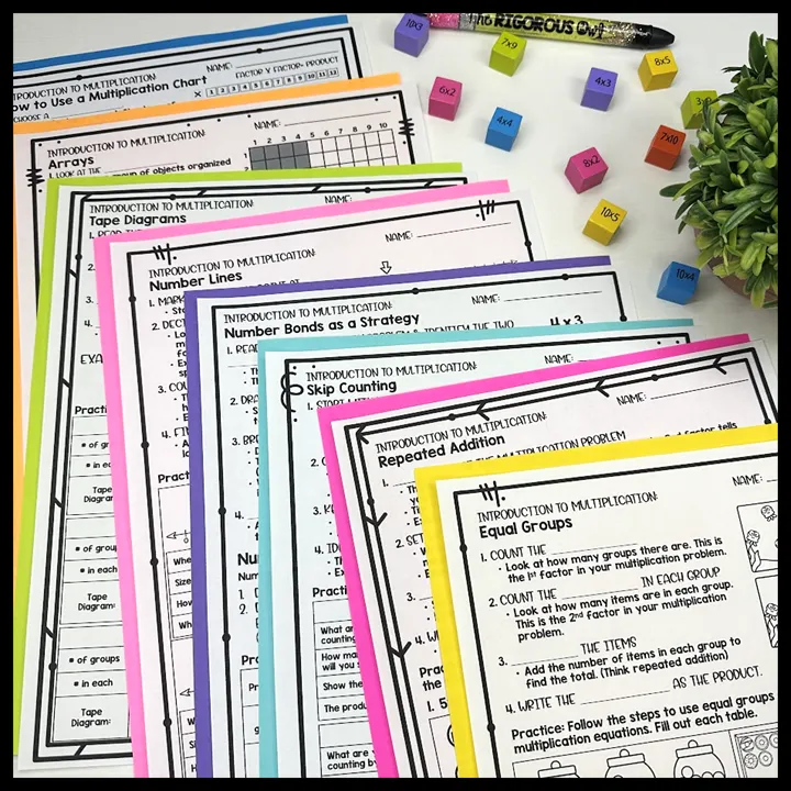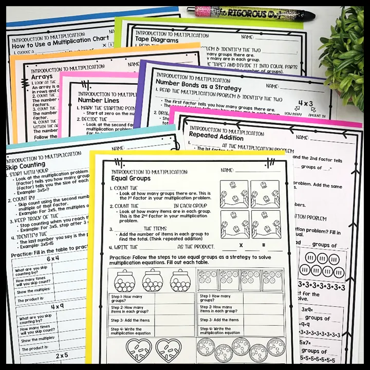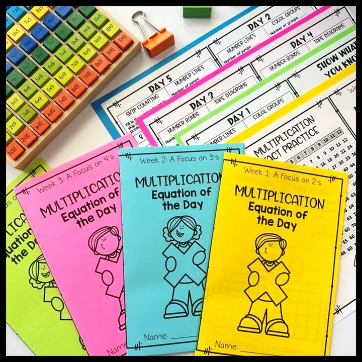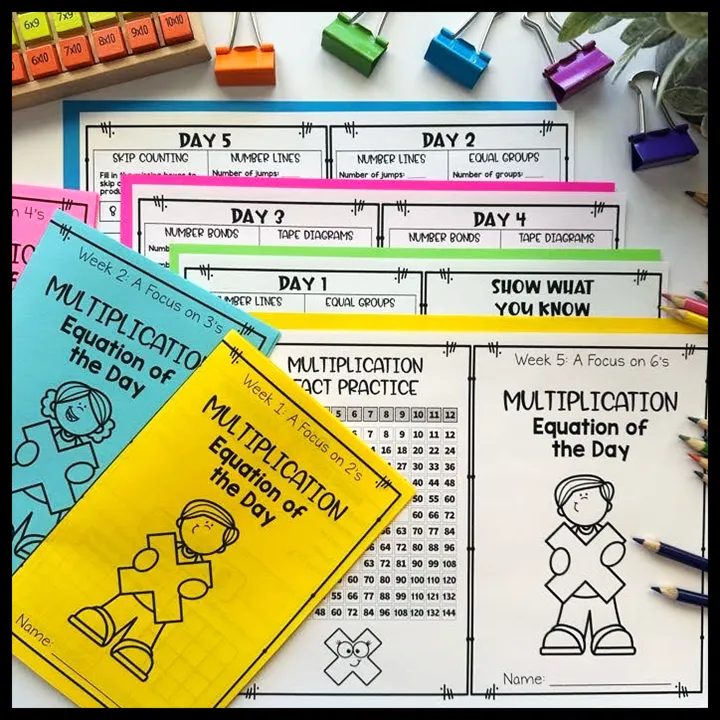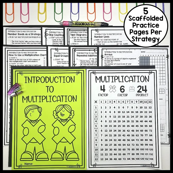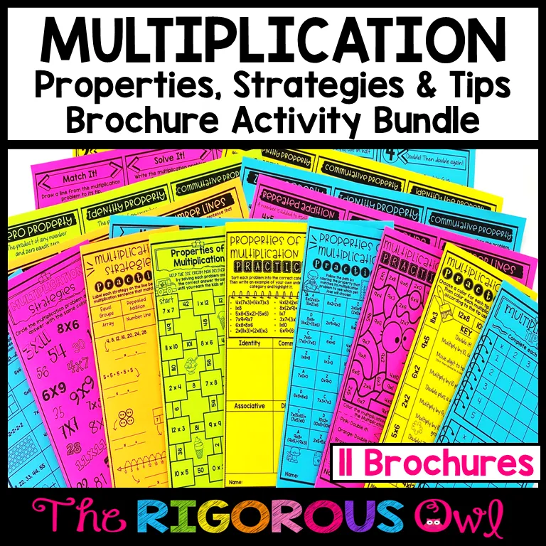First, start with the introduction to multiplication worksheet bundle covering all of the multiplication strategies in depth, Next, implement the multiplication strategies booklets as daily warm-ups. Finally, have students complete the Multiplication Brochures as centers, early finisher activities or homework. The optional add on resources can be used as needed.
