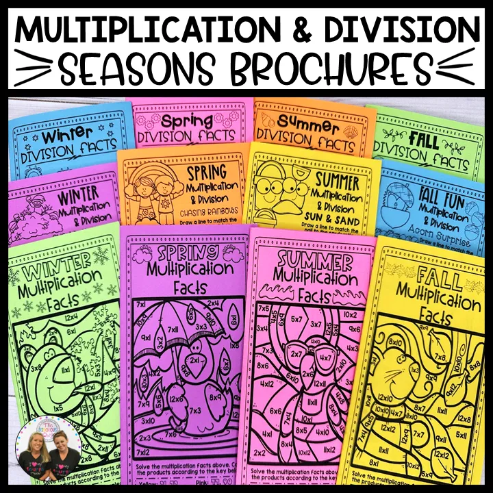 12 brochures—3 for each season (multiplication, division, and mixed)